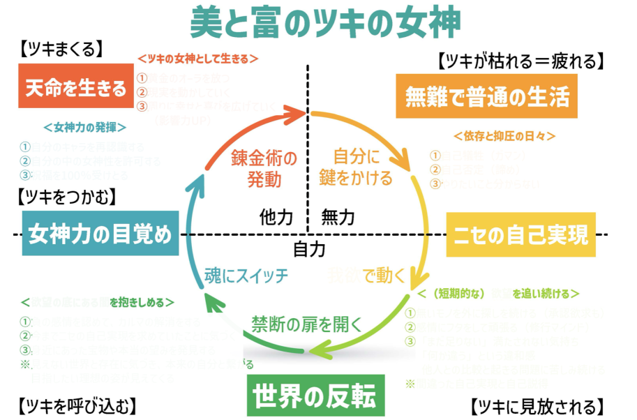 そして、この4つのステップを踏まえて、「ツキの女神性」を目醒めさせていくのが、今回の新たな試みです。